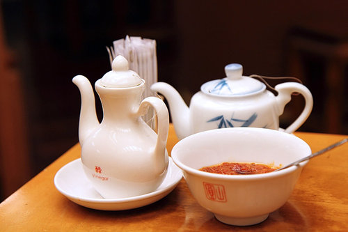 第八張 盛裝調味料的器皿也很別緻,分別放醋,辣椒醬和醬油~