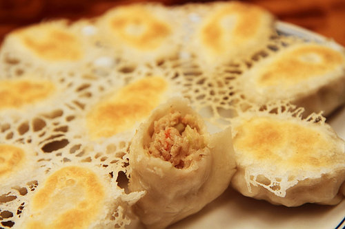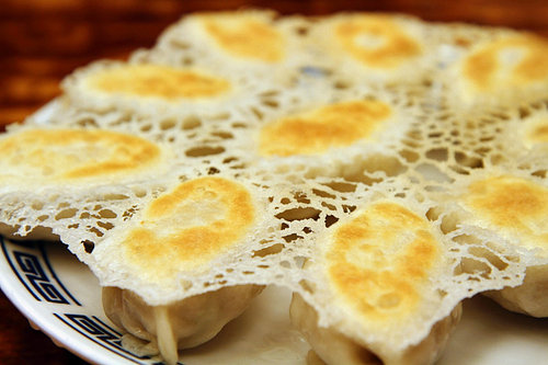 第九張 冰花煎餃~這是他們家的招牌喔! 煎的有夠美的,不過價格也很貴,這一盤要400元呢!