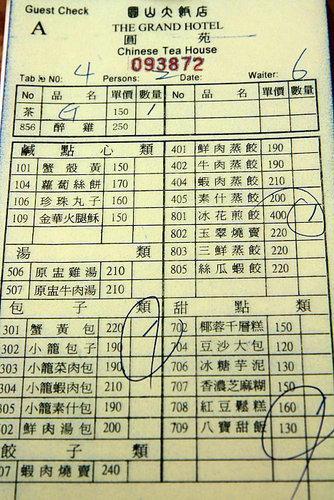 愛吃美食的我,在末日可能來臨之際,當然也要享用大餐囉! 這次選的是在台北圓山大飯店裡的圓苑餐廳,在五星級的大飯店裡好好吃一頓,就算天崩地裂,也不會太遺憾啦!^^ 圓苑餐廳以中式餐點為主,而且偏重在主食類(飯,麵,包子,餃子),這次去吃覺得滿不錯的,有興趣的朋友可以去吃看看囉!