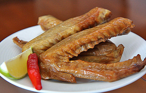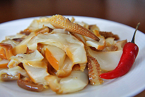 第二張 第一次吃到煙燻花枝,真是好吃! 吃起來Q中帶脆,是海味和煙燻的完美結合. 如果想吃脆一點的口感,可以從冰箱拿出來不等退冰直接吃,真的很脆,口感很特別~ 一個重量約400g,售價400元~