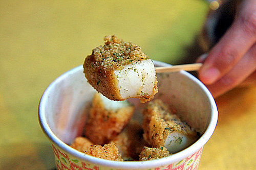 第一張 大花枝燒~炸花枝塊還滿軟嫩的,自己可以灑上海苔粉和胡椒鹽,一小份50元不便宜! 還算不錯吃只是有點油~ (2009/5/8 18:58 光圈4 快門1/25秒 ISO400 鏡頭焦距55mm)