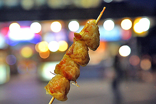 第三張 烤鳥蛋一串四個10元~(2009/5/8 18:45 光圈4 快門1/30秒 ISO400 鏡頭焦距55mm)