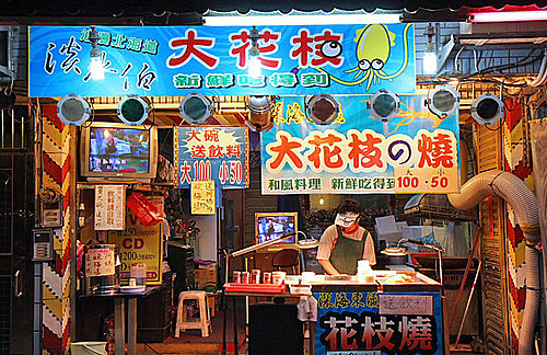 第二張 花枝燒店家~(2009/5/8 18:56 光圈4 快門1/60秒 ISO400 鏡頭焦距28mm)