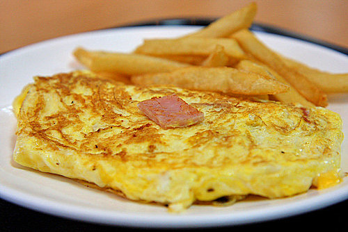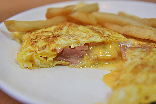 第四張 蛋裡面包著濃濃的起司和半熟的滑蛋,加上小片狀的火腿,真美味!(2009/3/28 16:43 光圈4 快門1/60秒 ISO400 鏡頭焦距55mm)