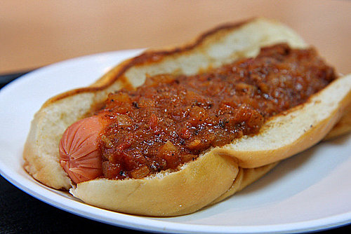 第一張 牛肉醬熱狗~大熱狗配上牛肉洋蔥番茄醬,和麵包大口咬下,很好吃!一份65元~ (2009/3/28 16:38 光圈5.6 快門1/13秒 ISO400 鏡頭焦距55mm)