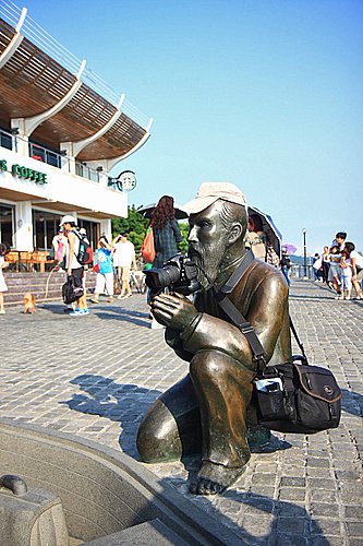 第四張 來個kuso照~這是攝影朋友將相機和背包擺在雕像上,帽子是我的喔!好笑吧~~(2008/5/17 16:17 光圈優先 光圈2.8 快門1/250秒 ISO100 鏡頭焦距21mm )