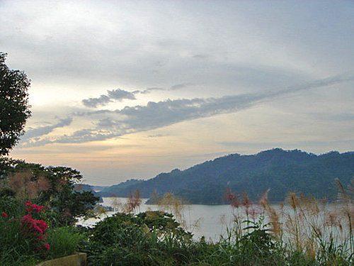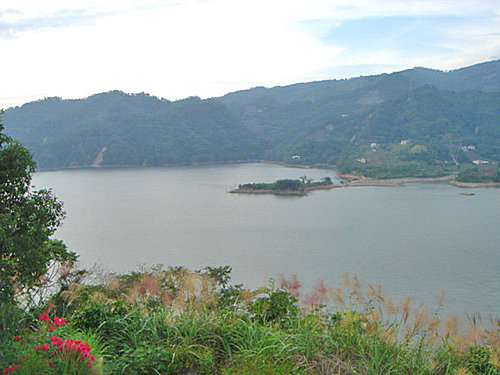 第一張 黃昏的雲彩配上湖光山色,真是美呀!觀景區旁有芒草和紅花,將整個照片點綴的不錯囉!(2006/10/30 16:40 快門1/200秒 光圈5.6)