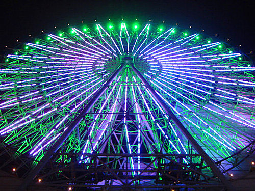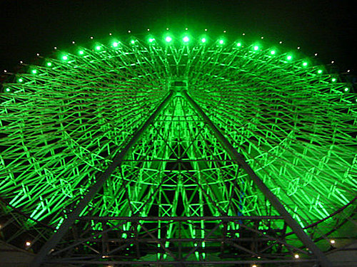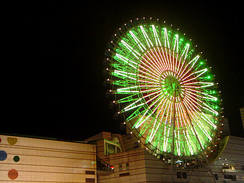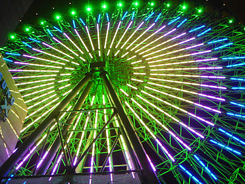 第一張 在摩天輪下方的大馬路上拍的,沒有燈光秀時摩天輪是全綠色的燈光~~