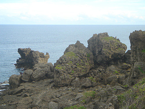 貓鼻頭是著名的景點,以珊瑚礁的海岸而聞名.貓鼻頭指的是第一張圖最左邊那塊突出的礁岩,可是一點都不像貓鼻~~~這次領隊跟我們說,照片正中間那塊大石頭更像貓,很像一隻屁股朝我們側躺的貓,頭轉向左邊看海~~不知道大家有看出來嗎?
